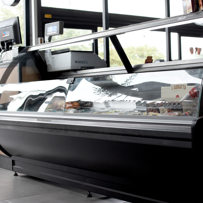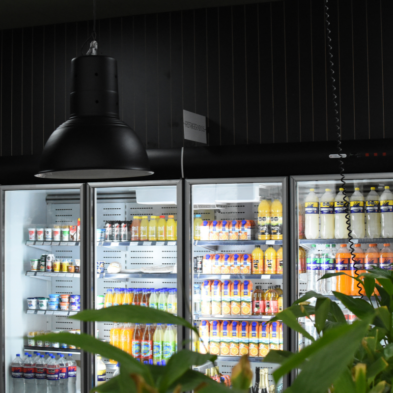 El proyecto se complementa con un frente refrigerado de heladeras y freezers para bebidas y lácteos.