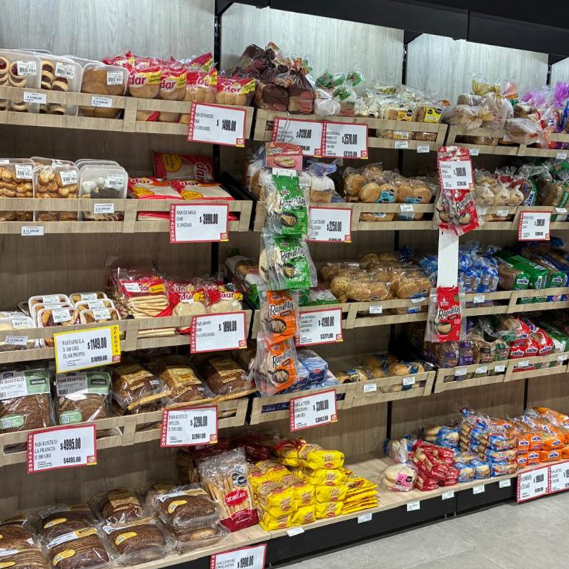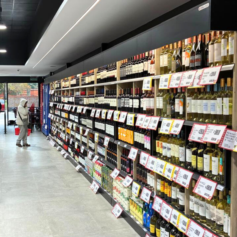 En los sectores de vinoteca y panificados diseñamos módulos específicos para jerarquizar los productos y lograr presentaciones más cuidadas y eficientes. Por otra parte, renovamos el frente de heladeras y freezers, junto con el sector de bateas para carnes, fiambres y quesos, con el objetivo de integrar mejor los equipos, mejorar la accesibilidad y generar una imagen uniforme y atractiva.