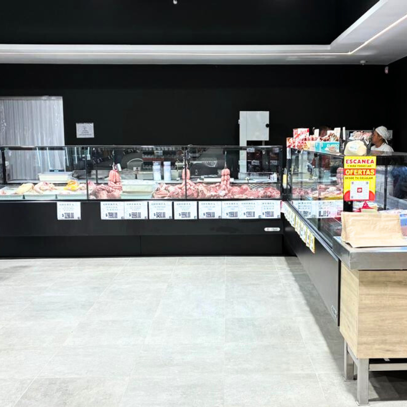 En el depósito incorporamos cámaras de media temperatura para ampliar el stock y optimizar la logística. El resultado es un supermercado actualizado, funcional y preparado para el futuro, donde el diseño moderno y el equipamiento adecuado mejoran tanto la estética como el rendimiento del comercio.